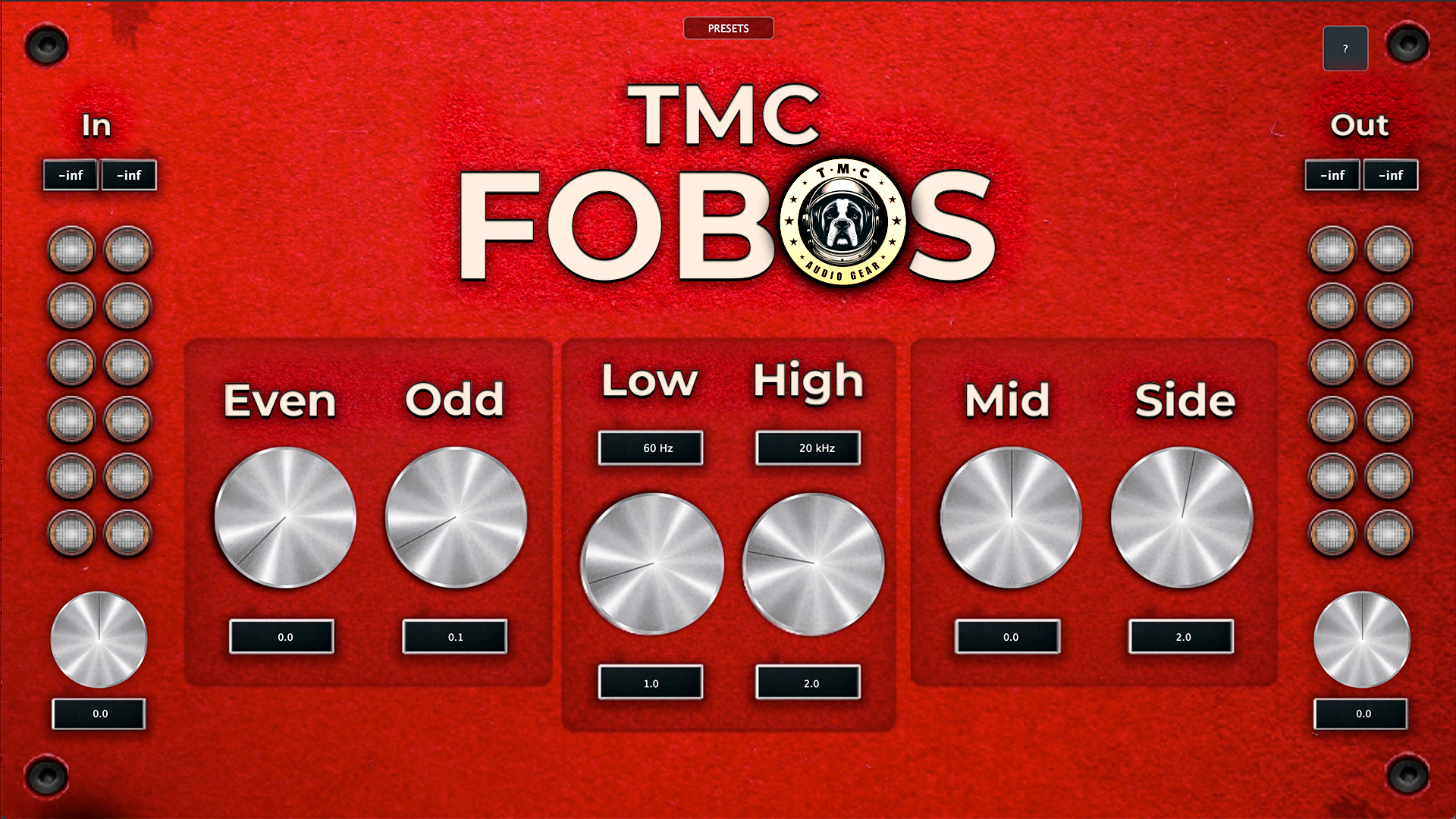 El principio de “menos es más”. TMC Fobos aporta exclusivamente el primer armónico par o el primer armónico impar. La Distorsión por Intermodulación (IMD) ocurre cuando dos o más frecuencias interactúan en un sistema no lineal, creando nuevas frecuencias que no están armónicamente relacionadas con la fundamental (sumas y restas de las originales). Al limitar la generación a un solo armónico, reduces drásticamente los “puntos de colisión” entre frecuencias, manteniendo la mezcla limpia y definida. Los primeros armónicos ($k=2$ para par, $k=3$ para impar) son los que definen el timbre percibido. Al eliminar los armónicos de orden superior (5º, 7º, 9º, etc.), evitas ese sonido “áspero” o “metálico” asociado a la distorsión digital barata.